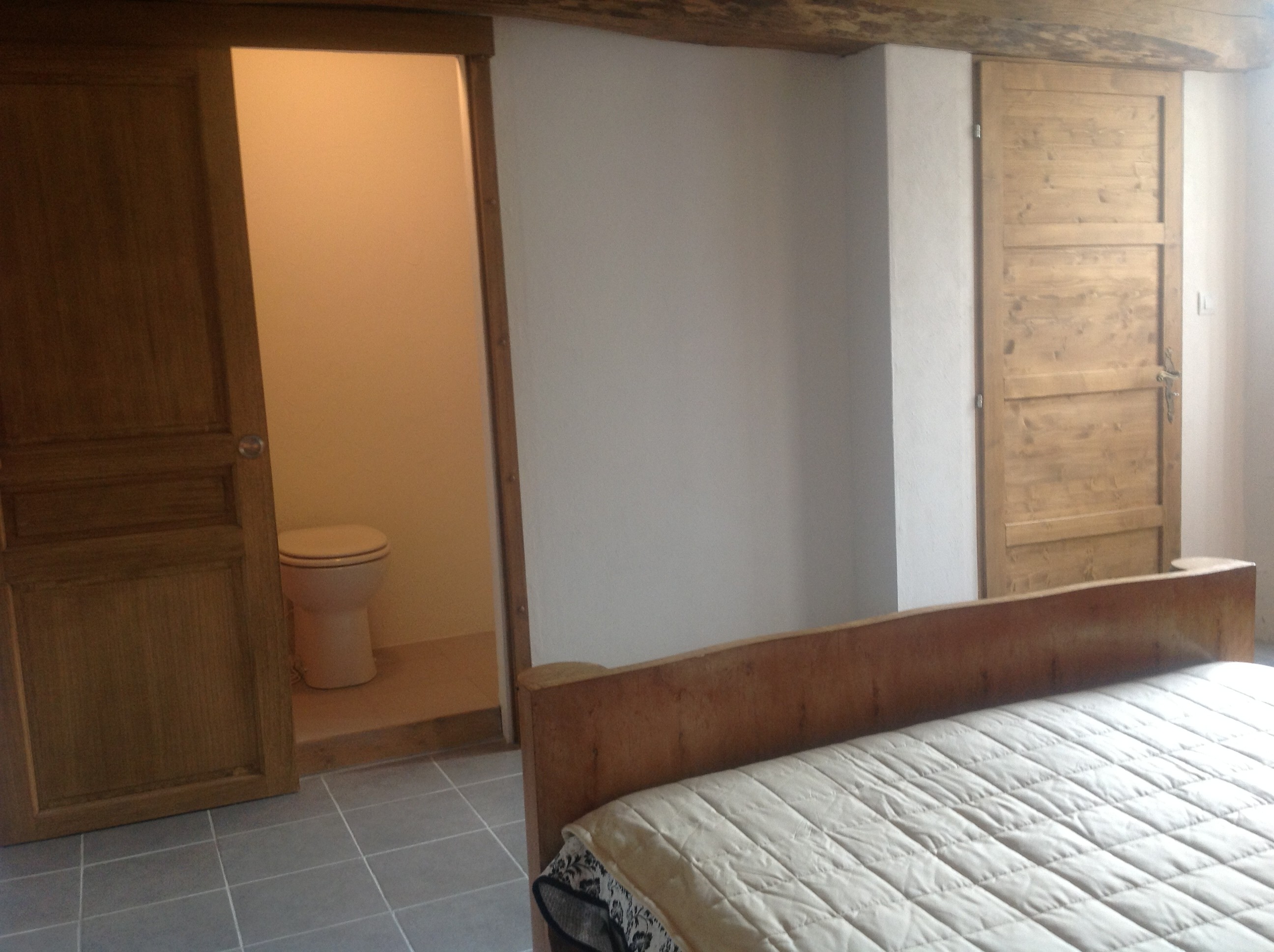The ground floor bedroom is decorated in keeping with the original features of the stable, original French furniture enhancing the look and feel of the room.