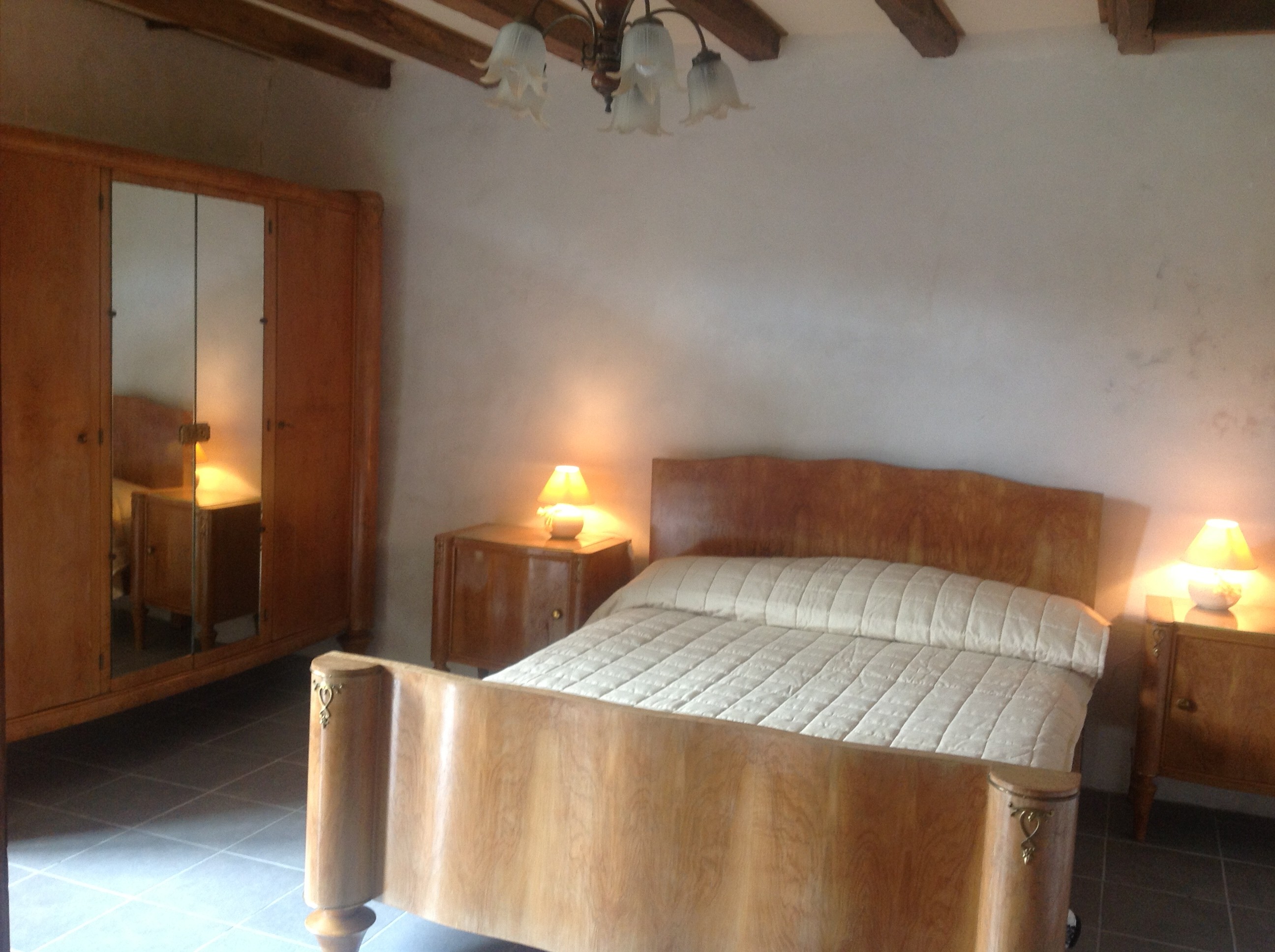 The ground floor bedroom is decorated in keeping with the original features of the stable, original French furniture enhancing the look and feel of the room.